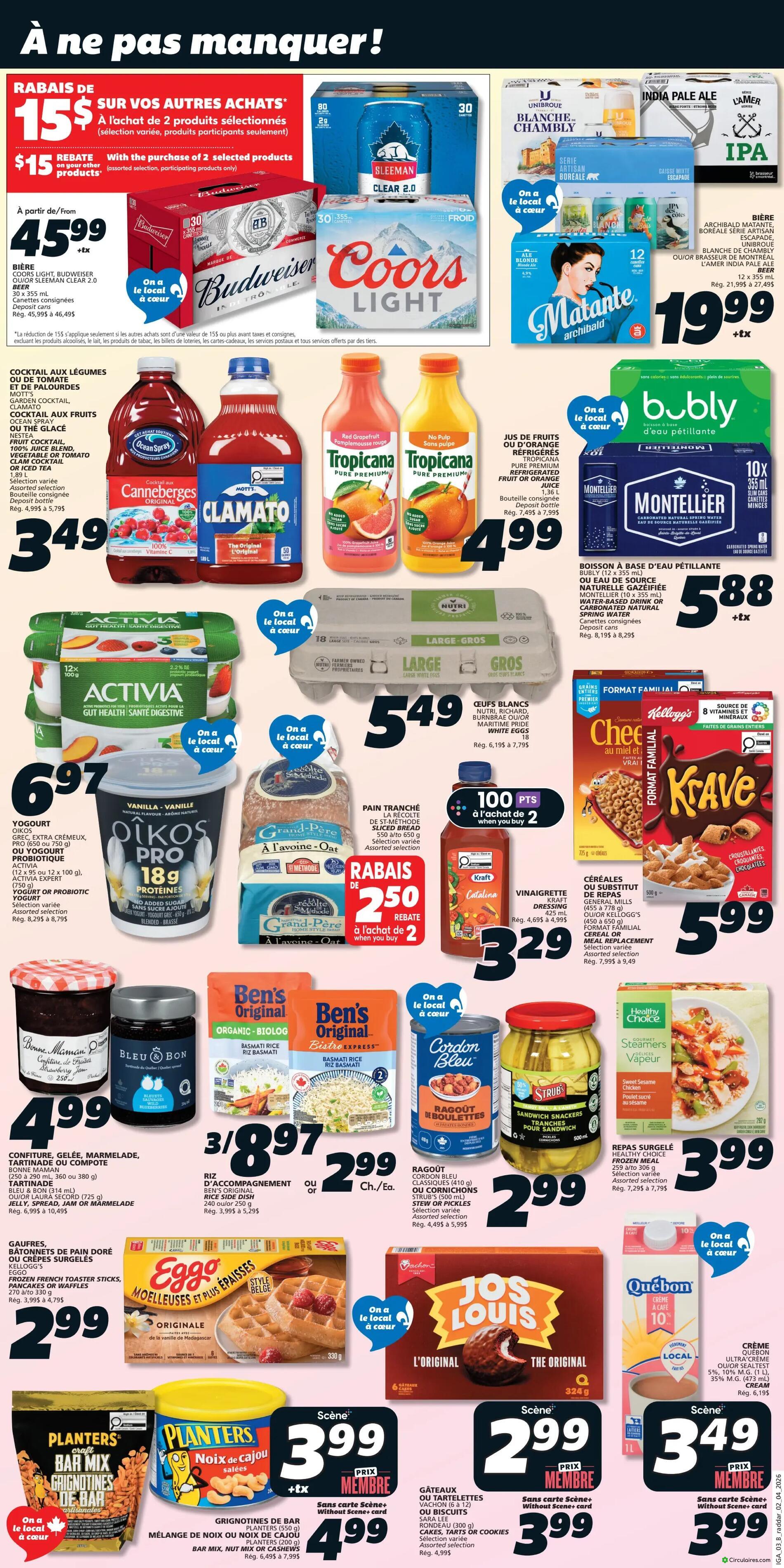 • IGA propose cette semaine des réductions sur les produits laitiers, fruits, légumes, viandes et poissons avec des offres limitées.