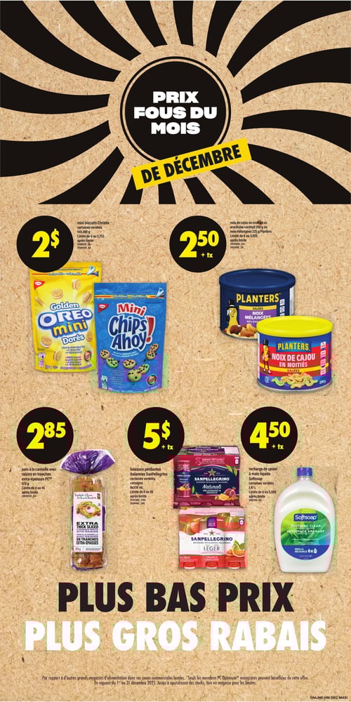 Metro mise beaucoup sur la qualité des produits frais et les options locales ou spécialisées. Ses circulaires affichent souvent des rabais sur des produits haut de gamme ou des marques connues.