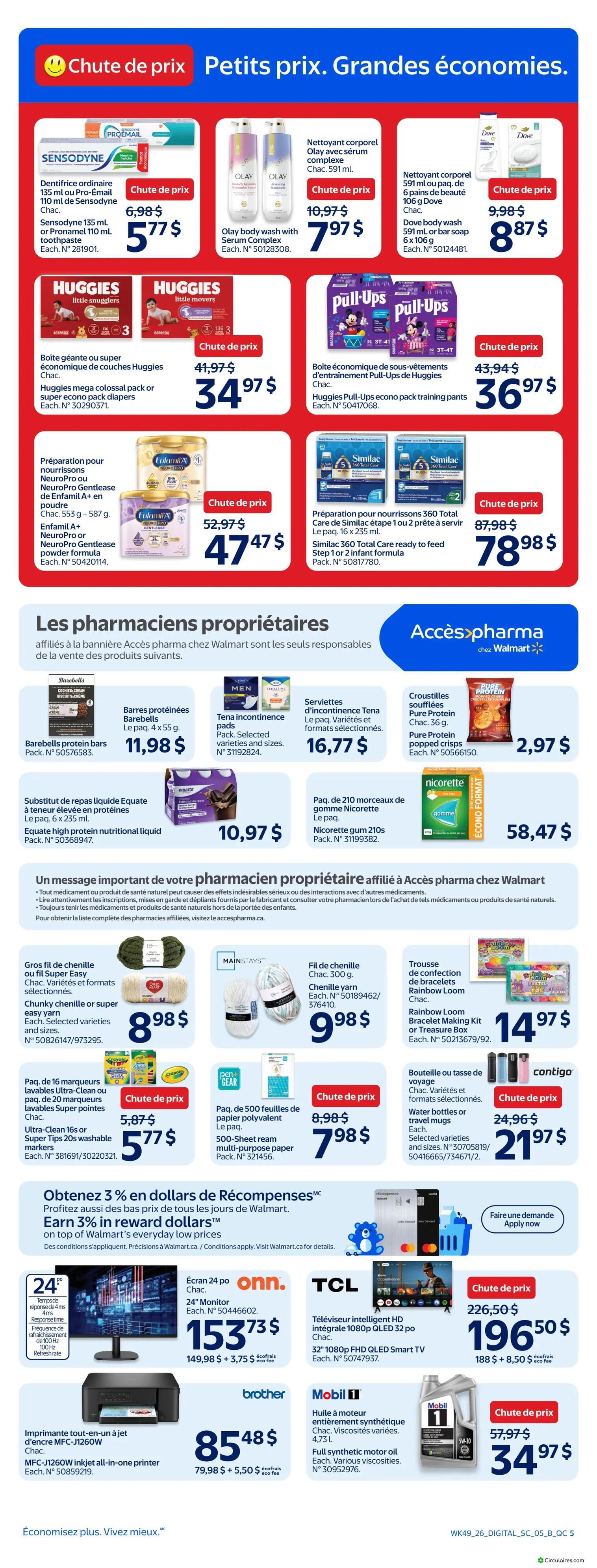 Dans la circulaire Walmart, on tombe surtout sur des rabais immédiats en magasin, sans carte spéciale.