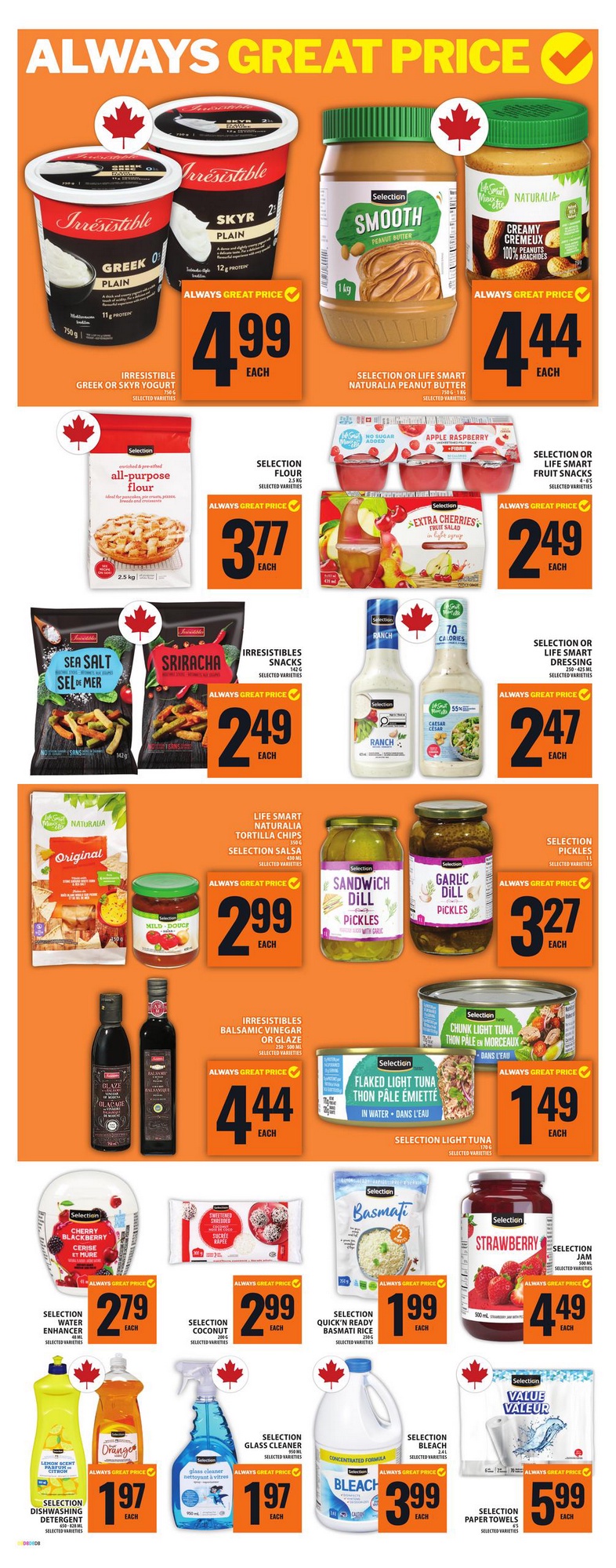 Food Basics promotes its own brands, including Selection and Irresistibles, throughout the flyer. These products often cost less than national brands.