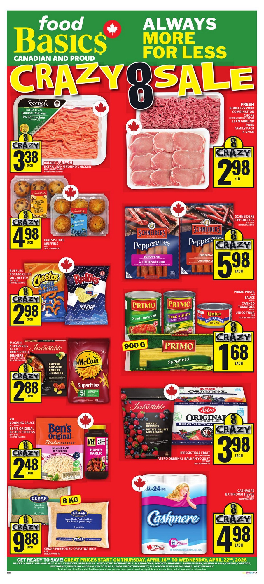 Food Basics Canada operates more than 100 stores across Ontario. Each week, the flyer reflects prices for specific regions, so deals may vary by city. You need to select your local store to see accurate pricing.