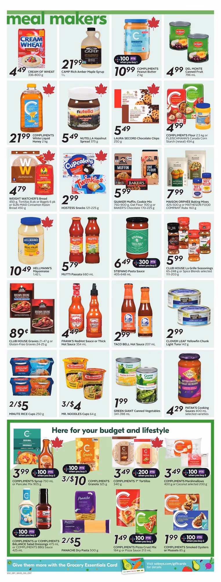 Sobeys regularly includes meal-focused promotions. You might find coordinated discounts on ingredients for common dinners, making it easier to plan your week in advance.