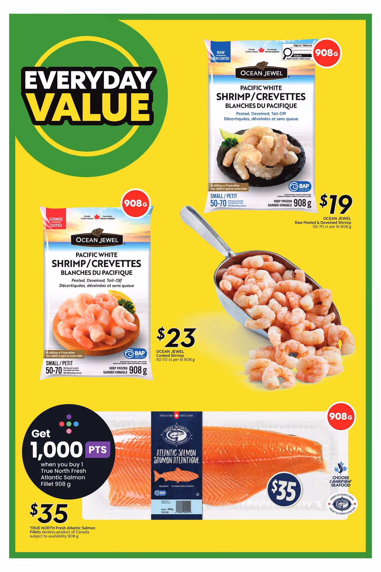 Regional differences reflect local supply, seasonal demand, and provincial pricing structures. A seafood promotion in Atlantic Canada may not match what you see in Western Canada.