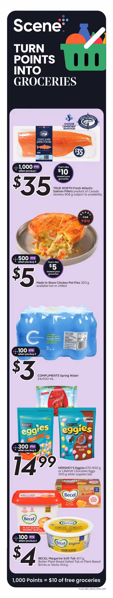 For example, a flyer may feature spend-and-get offers such as extra Scene+ points when you buy participating products. These promotions help you collect points faster than standard base earnings.