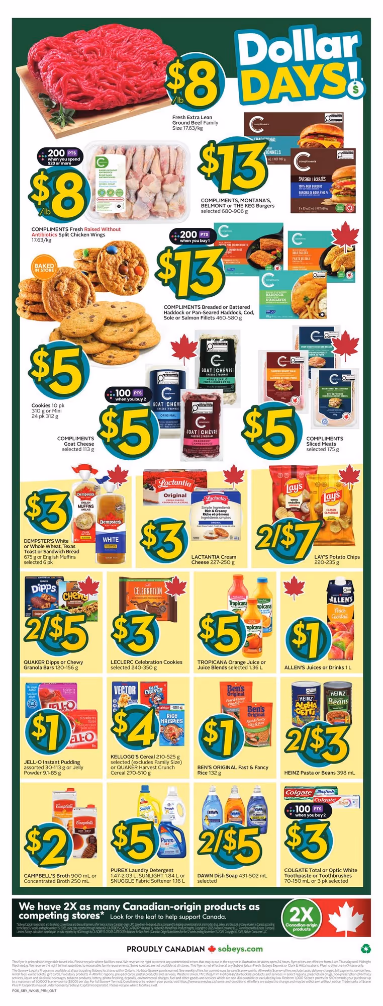 Sobeys adjusts many flyer prices and promotions by province. Product selection and pricing can differ in Alberta, Ontario, Atlantic Canada, or Western provinces due to supply chains and local demand.