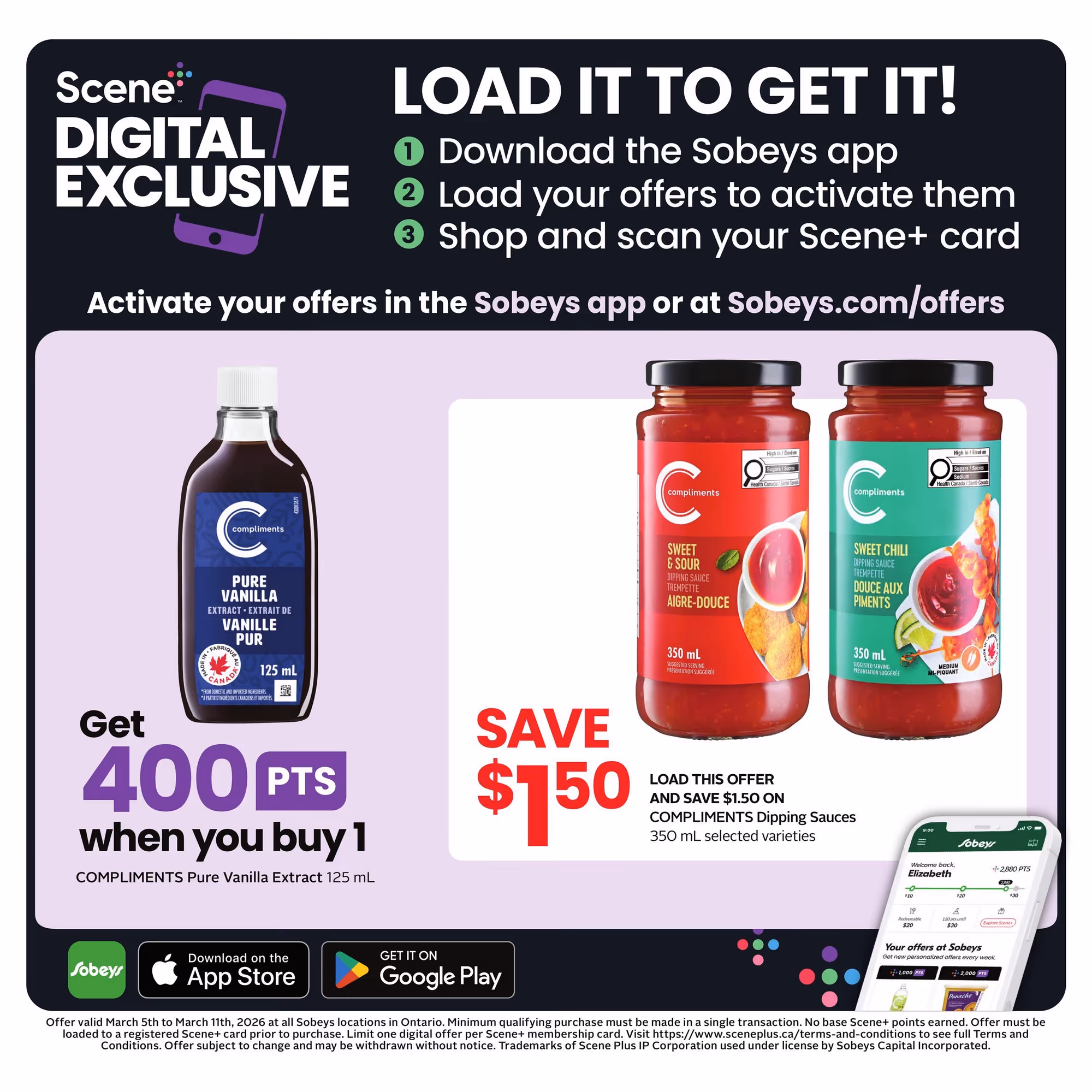 The app allows you to load special offers directly to your Scene+ account. When you buy qualifying items, you earn points that convert into future savings.