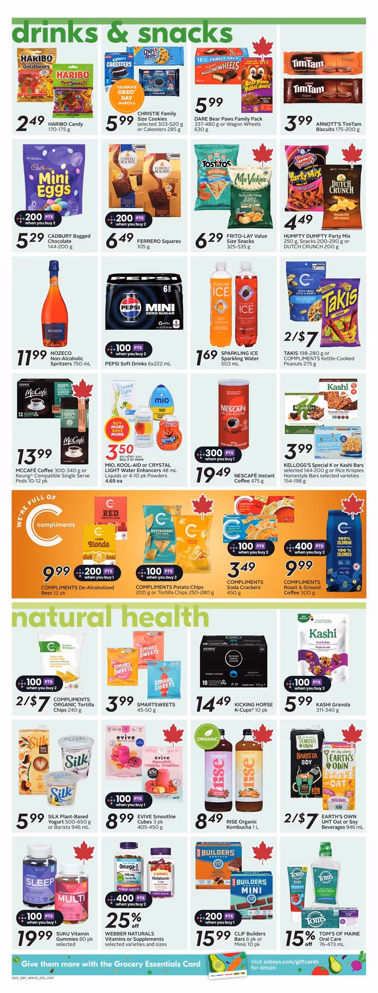You earn Scene+ points on eligible purchases at Sobeys, and the flyer often highlights items that accelerate your rewards. Watch for promotions that advertise bonus points on specific brands, departments, or total spend thresholds.