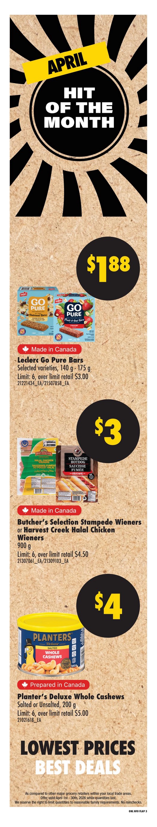 • Previous week’s deals end: Tuesday at store closing
